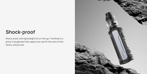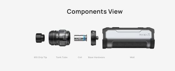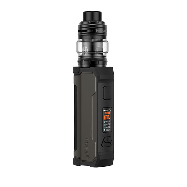 Aspire Rhea X Kit. The mod features a single 18650 battery, fast charging, 100 watts of max power, a full-color screen with easy UI, and 5 modes including temperature control....