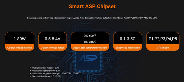5. Smart ASP Chipset supporting multiple modes: Watt/Voltage/Bypass/TC/CPS