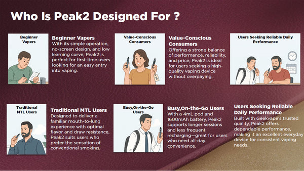 5. Compatible with Peak Cartridge (0.8ohm) – Delivers rich flavor and smooth vapor