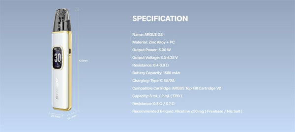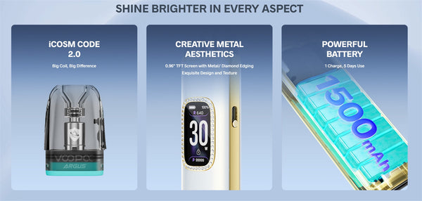 The Voopoo Argus G3 Pod Kit stands as the premium flagship of the Argus series, blending luxurious aesthetics with cutting-edge vaping performance. Its core innovation lies in iCOSM CODE 2.0...