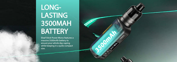 Eleaf iStick Power Mono Kit With its ergonomic shape and soft leather finish, Eleaf iStick Power Mono Kit will not only bring you comfortablity in your hand, but also flavor and cloud satisfaction. and features a 3500mAh internal battery, having no issues with the 80W output and employing a smart wattage recommendation and memory function. Coupled with the GTL Pod Tank and power cool black GTL coil applied, it holds 4.5ml vape juice, blowing your expectations with the full vaping method(MTL/DL/RDL). Eleaf iStick Power Mono Kit is definitely designed for cloud chasers, without sacrificing the flavor.