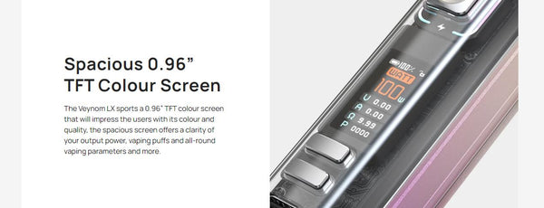 Boasting a generous 0.96inch TFT colour screen that will captivate your senses. The screen effortlessly showcases vital information such as output power, vaping puffs, and comprehensive vaping parameters, ensuring you stay informed and in control at all times.