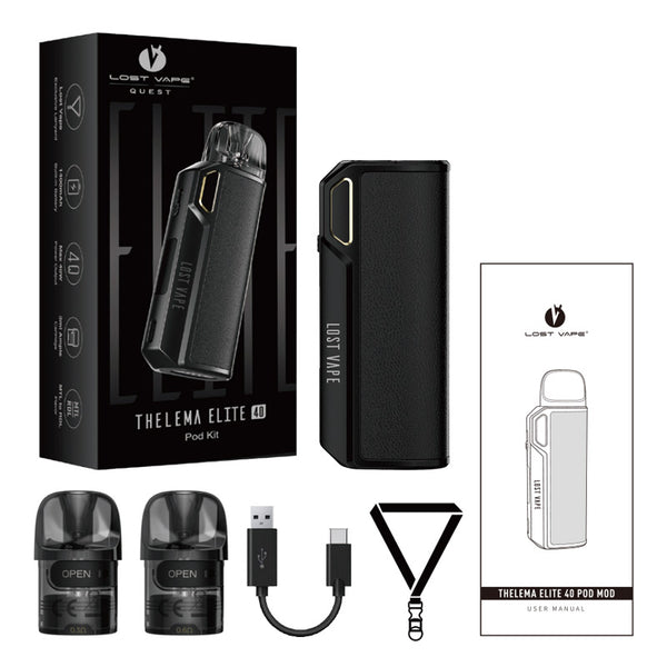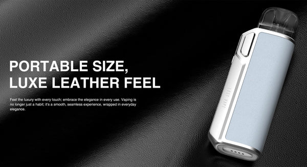 Lost Vape Thelema Elite 40 Kit houses a built-in 1400mAh battery with a 5-40W output range. Its groundbreaking E Plus Cartridge System accommodates 3ml e-liquid capacity, complemented by bottom airflow and adjustable airflow settings. Charging via a Type-C port ensures convenience. Compatible with Lost Vape Ursa Cartridges, the Thelema Elite 40 boasts a 40W maximum output, making it ideal for Restricted Direct-to-Lung (RDL) vaping. The use of Zin Alloy, PCTG, and PU Leather amalgamates durability and style, while the comfortable leather grip enhances handling, ensuring a noble vaping experience with the Lost Vape Thelema Elite 40.