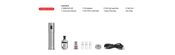 The Vandy Vape Bskr Elite Kit features constant voltage output from a single 18650 battery, 3 power modes, a stylish design, ease of use, a 3mL juice capacity, an effortless top-fill system, adjustable airflow, SVF filters for healthy vapor production, and nic salt coils.Available in frosted grey, stainless steel, or matte black, the paint finish makes it comfortable to hold. A 3ml tank with an easy top-fill method uses VVC coils,The Bskr Elite uses a 18650 battery with a bottom-loading system and a Type-C charging port. A battery LED indicates the battery’s charge level and also which of the 3 power settings you are currently using.