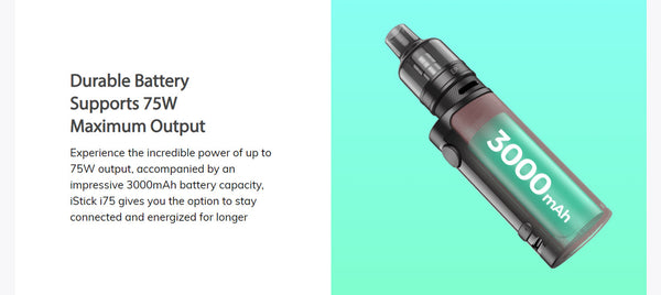 Eleaf iStick i75 Kit with stylish leather exterior is luxurious and comfortable to hold. It is composed of iStick i75 Device and EP Pod Tank 5ml. It is powered by...