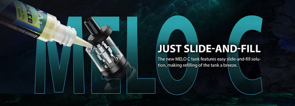 Eleaf MELO C Tank of 25mm features 5ml/2ml e-juice capacity and easy slide and fill system. MELO C is compatible with all EC Coils, making refilling of the tank a breeze.