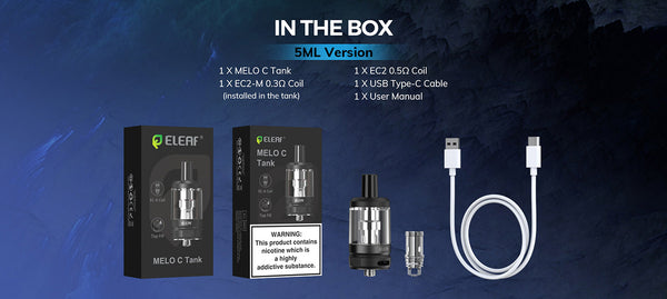 Eleaf MELO C Tank of 25mm features 5ml/2ml e-juice capacity and easy slide and fill system. MELO C is compatible with all EC Coils, making refilling of the tank a...