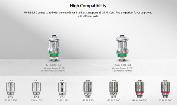 Eleaf Mini iStick 2 Kit is a new mini box mod kit combined Mini iStick 2 box mod and GS Air 4 Tank. It comes with everything about a nice...
