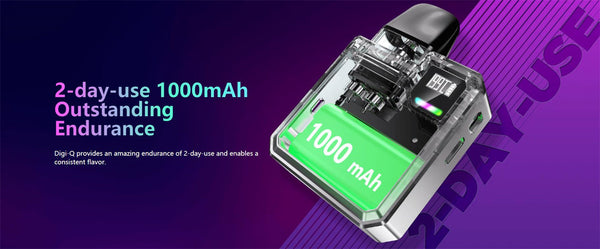 Digiflavor Digi-Q Kit - a brand-new design with stylish pattern and aluminum alloy. Compatible with Geekvape Q Cartridge, Digi-Q brings extraordinary vape experience with precise adjustments for airflow and temperature. Thanks to 1000mAh battery and HD OLED display with RGB light, Digi-Q Kit provides worry-free and more intuitive experience.