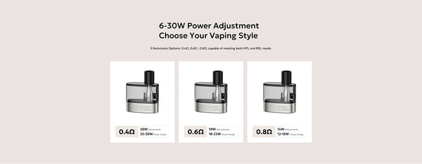 3. Adjustable Power Output: Customize your vaping experience with a wattage range of 6–30W, suitable for various vaping styles.