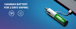 5. 1000mAh battery for 2 days vaping
