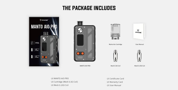Rincoe Manto AIO Pro Kit is the new product of the Rincoe Manto series, featuring an external 18650 battery (not included), 3.5ml e-liquid capacity and 80W maximum output power. As...