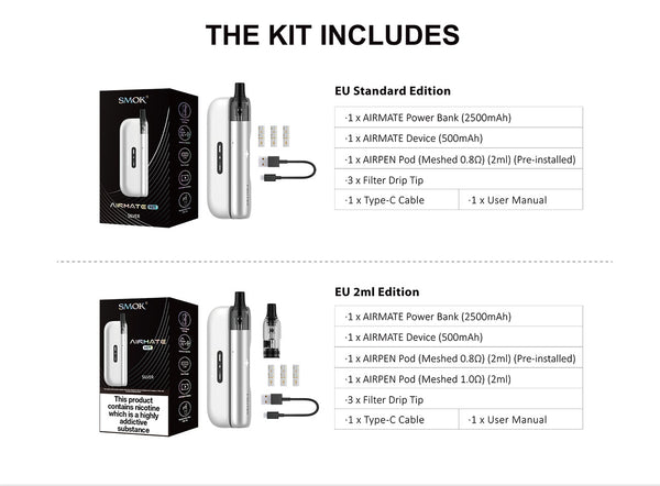 The SMOK AIRMATE PCC Kit combines minimalist elegance with powerful practicality. Featuring the ultra-compact AIRPEN pod system and a stylish 2500mAh magnetic power bank, this kit is engineered for modern...
