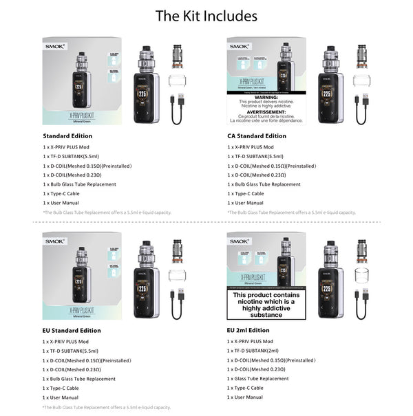 SMOK X-PRIV Plus Mod Kit Great capabilities bring unparalleled performance, featuring a maximum output of 225W,2.0A fast charging, and dual externally dual 18650 batteries.These attributes are intrinsic to the X-PRIV...