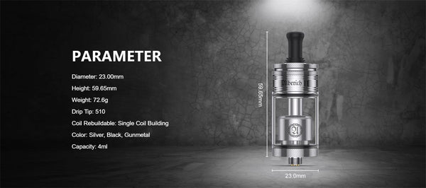 Alberich II MTL RTA of 22mm diameter is specially designed for MTL vapers.Top-to-bottom airflow design brings you concentrated, flavorful vapor; It has 6 airflow pins to optimize vapor experience: 0.8mm/1.0mm/1.2mm/1.5mm/1.8mm/2.0mm....