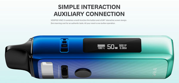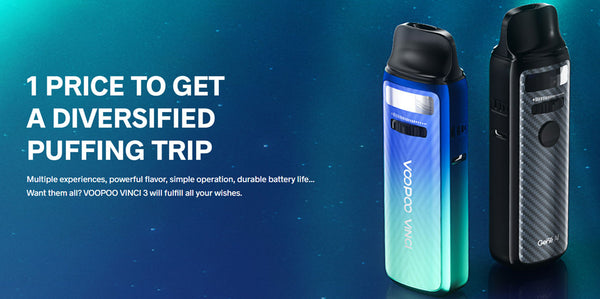 The Voopoo VINCI 3 Mod Pod System, offering an internal 1800mAh battery, 5-50W output range, and uses some new additions to the PnP Coils Series. Constructed from durable zinc-alloy, the chassis of the Vinci 3 Mod Pod is lightweight and slim, making it extremely portable. Fitting neatly within the bookbag, purse, or pocket, the Vinci 3 does not sacrifice in the performance department, packing an 1800mAh battery inside the small chassis. Holding up to 4mL within the refillable pod, the Vinci 3 calls upon the host of PnP coils to deliver flavorful MTL vaping or large clouds of flavored vapor via DTL vaping. Visually striking and with function to match, this is the next pod system that will make its way into your collection.